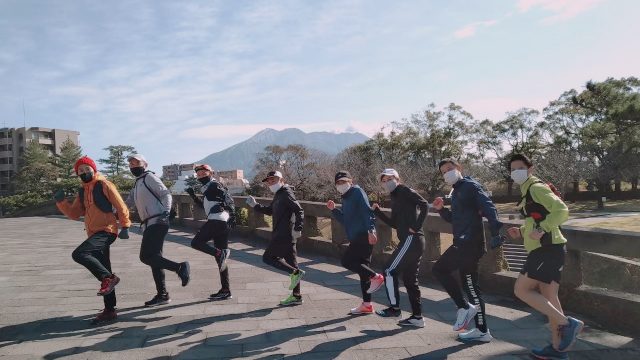 鹿児島のシンボルでもある桜島の周りを走りながらマラソン大会に向けての長距離練習を行います。