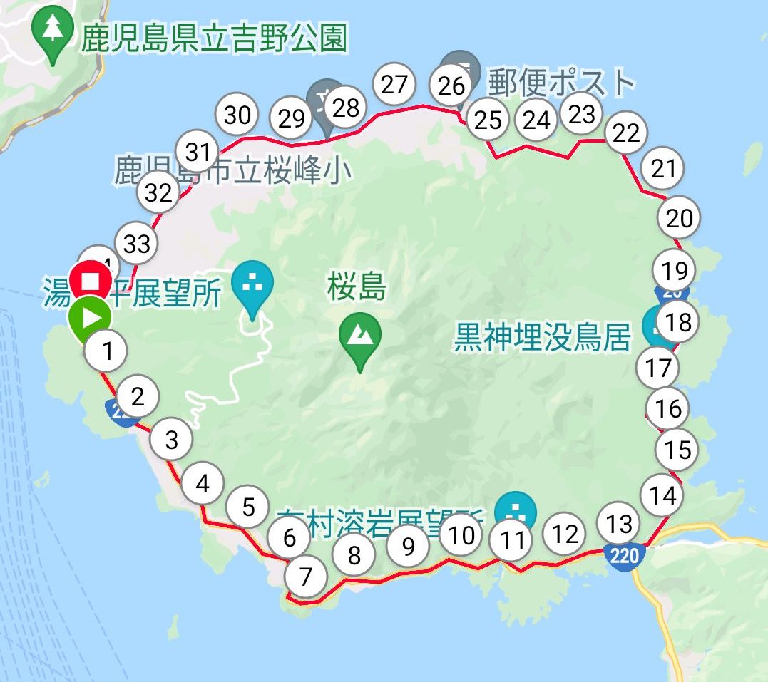 サイト情報 コースマップ trumpet765 2021年12月29日 / 2022年1月5日 桜島公民館を反時計周りにスタートして桜島公民館がゴールになります。 給水ポイントは3km~5km置きに設置します。 トイレのポイント 利用できるトイレの数が少ないのでご注意ください。 6km付近のトイレ 11km付近のトイレ 13km付近のトイレ 17km付近のトイレ 26km付近のトイレ 給水・給食について 給水ポイントは、サポートカーによる移動式になります。 水 スポーツドリンク お茶 お菓子類 その他準備しております。 エントリー受付中です!